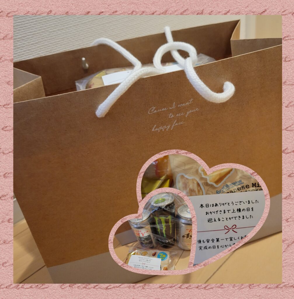 5名で作業して頂くという事で、差し入れの飲み物やお菓子、手土産、御祝儀の準備をコツコツとしてきました。